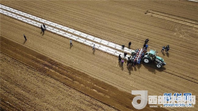 在新疆庫(kù)車縣牙哈鎮(zhèn)的一處棉田,“智能拖拉機(jī)”在進(jìn)行播種作業(yè)(3月23日無(wú)人機(jī)拍攝)。國(guó)家統(tǒng)計(jì)局4月17日發(fā)布數(shù)據(jù),初步核算,一季度國(guó)內(nèi)生產(chǎn)總值198783億元,按可比價(jià)格計(jì)算,同比增長(zhǎng)6.8%。 新華社記者 胡虎虎 攝