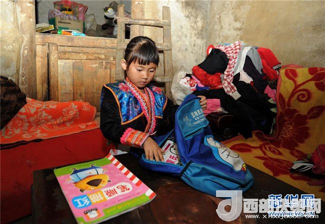 在今年的易地扶貧搬遷中,家住貴州省安順市西秀區(qū)巖臘鄉(xiāng)龍?zhí)洞甯裆趁缯?歲女孩吉雪,與家人一起從缺水、耕地少、海拔高的格沙苗寨搬遷至50公里外的西秀區(qū)工業(yè)園區(qū)易地扶貧搬遷安置點(diǎn)——彩虹社區(qū)。從4月21日夜開(kāi)始,吉雪便開(kāi)始忙著收拾自己的書(shū)包,準(zhǔn)備隨同爺爺、奶奶、妹妹一起離開(kāi)深山苗寨。
