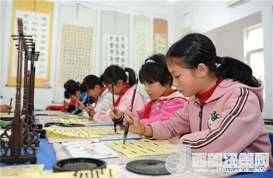 陜西省漢中市勉縣溫泉鎮(zhèn)中心小學,是勉縣在汶川地震受災后重建的一所鄉(xiāng)村小學,目前在校學生470人。近年來,溫泉鎮(zhèn)中心小學不斷改善辦學條件和辦學質量,在校內建成音樂教室、書法教室、圖書室等多樣化教學場所,并長期開展舞蹈課、書法課、民俗表演課等素質教育課程,使學生們能夠享受到優(yōu)質的教育服務。新華社發(fā)(張博文 攝)