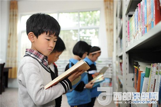 4月25日,陜西省勉縣溫泉鎮(zhèn)中心小學學生在圖書室內閱讀書籍。