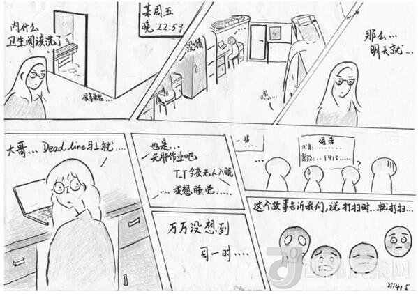 李雍告訴記者,家居與工業(yè)設(shè)計學院的學生都有一定美術(shù)功底,畫檢討剛好能讓學生在反省的同時鍛煉自己的專業(yè)技能,加上漫畫的表現(xiàn)形式輕松活潑,更符合“95后”的表達風格。“學生們的漫畫體檢討融合了他們的創(chuàng)作情感,文字無法完整表達的心理活動,都可以通過這種圖文并茂的形式生動地呈現(xiàn)出來,而他們會把這種情感潛移默化嫁接到檢討的屬性里去,從而提升檢討教育的實效性。”