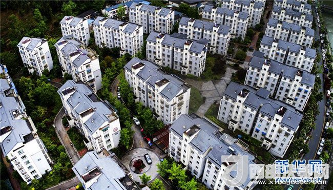 由浙江省寧波市援建的青川縣城東山小區(qū)(4月25日無人機拍攝)。汶川地震后的2009年12月,東山小區(qū)成為當?shù)氐谝粋€建成的安置小區(qū),首批408戶災民搬進了新居。新華社記者陶明攝