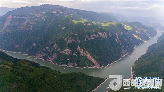 2017年5月10日無(wú)人機(jī)航拍的巫峽的長(zhǎng)江大拐彎景色。