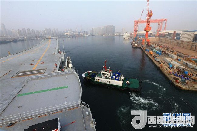 5月13日,我國第二艘航母從大連造船廠碼頭啟航,赴相關(guān)海域執(zhí)行海上試驗任務,主要檢測驗證動力系統(tǒng)等設(shè)備的可靠性和穩(wěn)定性。新華社發(fā)(李剛 攝)