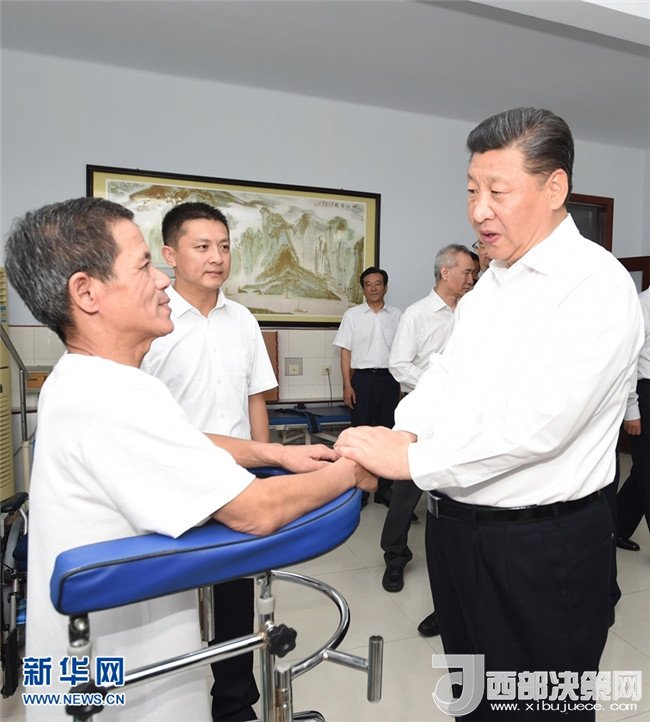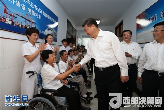 2016年7月28日,中共中央總書(shū)記、國(guó)家主席、中央軍委主席習(xí)近平到河北唐山市調(diào)研考察。這是習(xí)近平在唐山市截癱療養(yǎng)院看望慰問(wèn)截癱傷員。 新華社記者 蘭紅光 攝