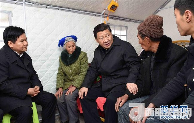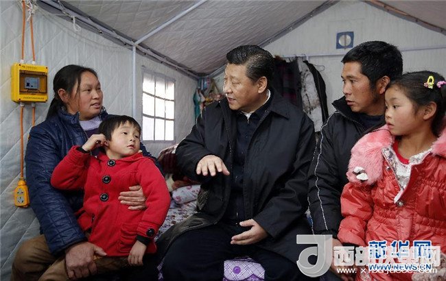 2015年1月19日至21日,中共中央總書(shū)記、國(guó)家主席、中央軍委主席習(xí)近平來(lái)到云南昭通、大理、昆明等地,看望魯?shù)榈卣馂?zāi)區(qū)干部群眾,深入企業(yè)、工地、鄉(xiāng)村考察,就災(zāi)后恢復(fù)重建和經(jīng)濟(jì)社會(huì)發(fā)展情況進(jìn)行調(diào)研。這是1月19日,習(xí)近平來(lái)到魯?shù)榭h小寨鎮(zhèn)甘家寨紅旗社區(qū)過(guò)渡安置點(diǎn),走進(jìn)鄒體富老兩口和孫子住的帳篷,詢(xún)問(wèn)家里吃飯、補(bǔ)助、收入等問(wèn)題。新華社記者 張鐸 攝