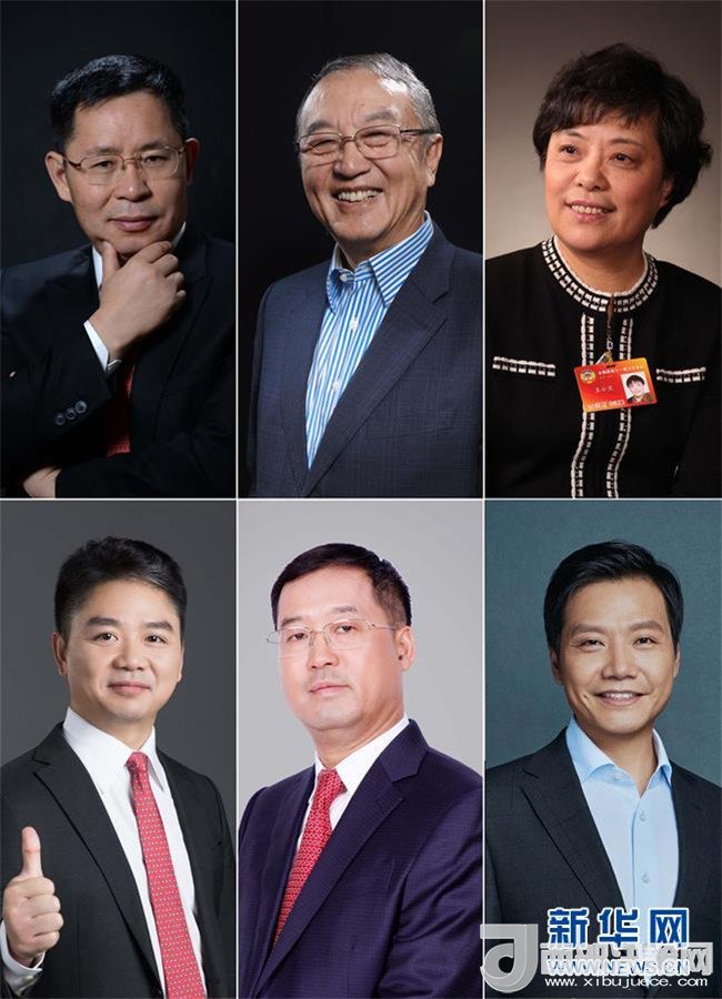 拼版照片:(上排由左至右)用友網(wǎng)絡(luò)董事長兼CEO王文京,聯(lián)想控股董事長、聯(lián)想集團(tuán)創(chuàng)始人柳傳志,時(shí)代集團(tuán)公司總裁王小蘭;(下排由左至右)京東集團(tuán)董事局主席兼CEO劉強(qiáng)東,利亞德創(chuàng)始人李軍,小米科技董事長兼CEO雷軍。新華社發(fā)