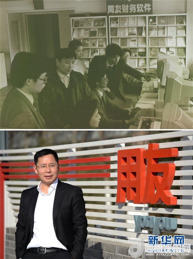 拼版照片:上圖為1989年的用友;下圖為用友網(wǎng)絡(luò)董事長兼CEO王文京(資料照片)。用友是中關(guān)村第一個(gè)拿到私營高新技術(shù)企業(yè)牌照的企業(yè),編號(hào)“SY0001”。從創(chuàng)業(yè)時(shí)2個(gè)人的軟件服務(wù)社,到30年后的1.5萬人,用友正從管理軟件公司向?yàn)槠髽I(yè)“賦能”的知名云服務(wù)企業(yè)邁進(jìn)。新華社發(fā)