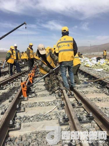 在玉珠峰車站施工現(xiàn)場,600余名工人正在緊張的進行螺紋道釘錨固定、搗道石、安裝枕木連接板等操作。橘黃色的工作服在遠處皚皚雪山的映照下分外醒目和溫暖。中鐵二十一局格拉擴能改造工程指揮部總工李先告訴記者:“這個車站的改造由車站北側(cè)增加2條到發(fā)線,在車站的西側(cè)增加3股道的專用裝卸線。涉及到路基、橋涵、房建、軌道、通信、信號、電力7個專業(yè)。”