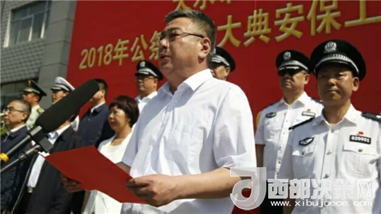 天水市委常委、政法委書(shū)記蒲軍,市人大常委會(huì)副主任王曉琴,市政協(xié)副主席郭明興,市人民檢察院檢察長(zhǎng)張發(fā)魁,市委政法委常務(wù)副書(shū)記陳明達(dá),市司法局局長(zhǎng)彭德祥,市公安局常務(wù)副局長(zhǎng)曹小明等領(lǐng)導(dǎo)出席大會(huì)。會(huì)議由副市長(zhǎng)、市公安局局長(zhǎng)馬瑛主持。全市公安機(jī)關(guān)各警種460余人列隊(duì)參加誓師大會(huì)。