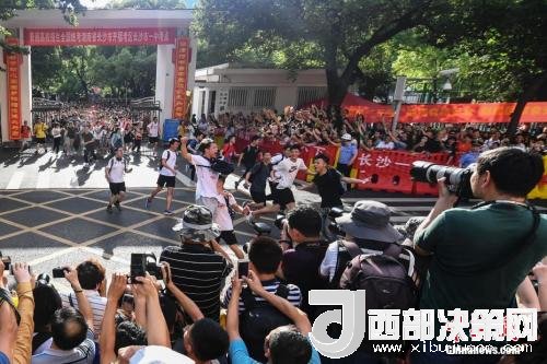 資料圖:6月8日下午,湖南長沙市一中考點外,考生跑出考場,慶祝高考結(jié)束。 中新社記者 楊華峰 攝