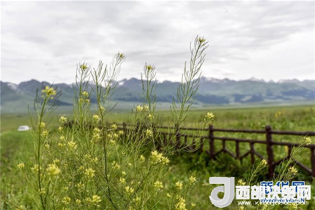 那拉提“空中草原”上盛開(kāi)的黃色野花(7月8日攝)。