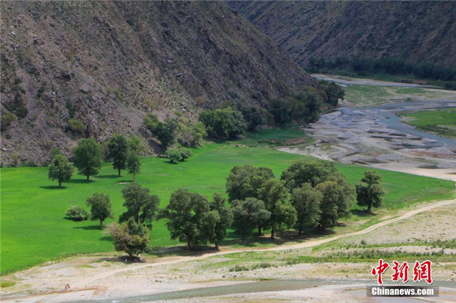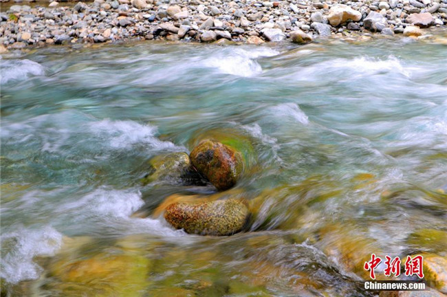 盛夏時節(jié),有著天山“幽谷”之稱的新疆和靜縣克爾古提,呈現(xiàn)出一副“冰火”兩重天景象。谷里氣溫涼爽,谷外高溫炙人,山道盤繞危崖,谷底芳華濃郁,溝谷亂石臥灘、清流穿碧,水畔古榆蒼茫,充滿了原始而又神秘的美,成為眾多游客選擇避暑的好地方??藸柟盘嵛挥谛陆挽o縣城東北天山南麓60多公里的山地峽谷,海拔1500至3000米,是國家重點公益林區(qū),屬于封閉狀天山水源涵養(yǎng)林區(qū)。王陸斌 攝