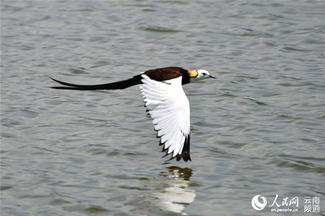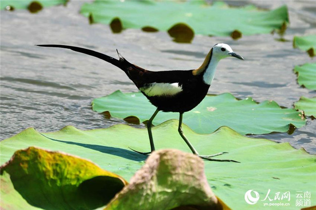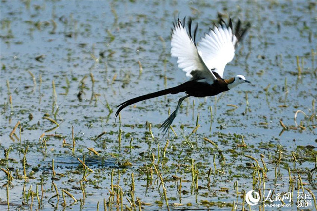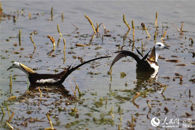 長尾水雉現(xiàn)身云南異龍湖濕地孔賓攝