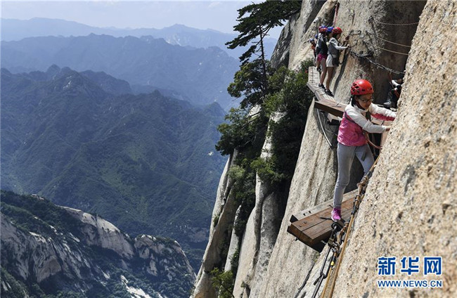 7月18日,游人通過(guò)華山長(zhǎng)空棧道。