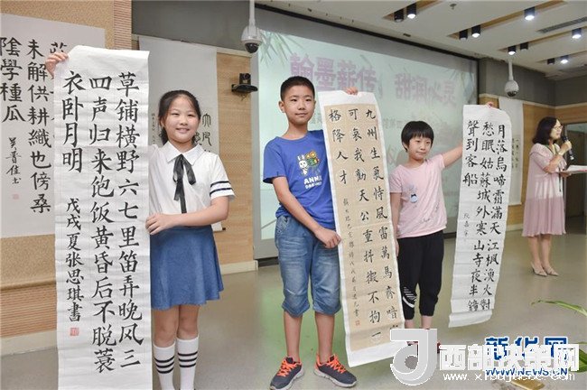 7月24日,在福建省少年兒童圖書館,參加省級書法名師公益夏令營的孩子們在分享書法創(chuàng)作體會。