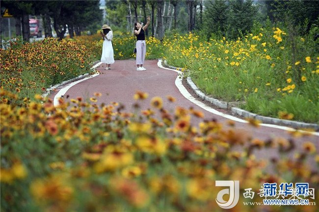 寧夏固原市涇源縣城郊的健身步道(7月19日攝)。 新華社記者 王鵬 攝