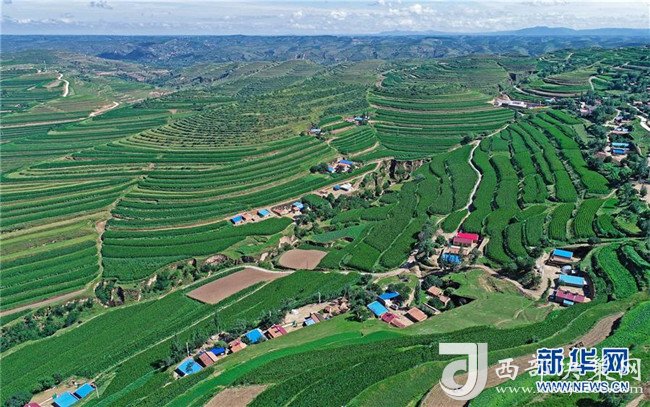 寧夏固原市隆德縣觀莊鄉(xiāng)前莊村(7月17日無人機拍攝)。 新華社記者 王鵬 攝