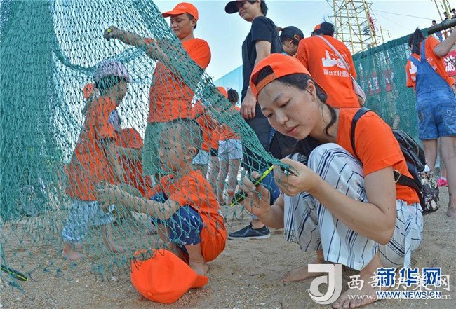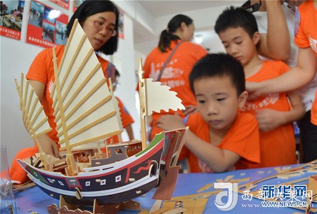 為進一步豐富廣大外來務(wù)工人員子女的暑期生活,福建省泉州市泉港區(qū)先后邀請轄區(qū)130多戶外來務(wù)工人員家庭,一起參觀當?shù)胤逦补懦?,體驗海絲文化。新華社發(fā)(林弘梫 攝)