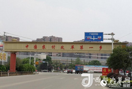 “中國農(nóng)村改革第一鄉(xiāng)”牌坊。(記者陳曦 攝)