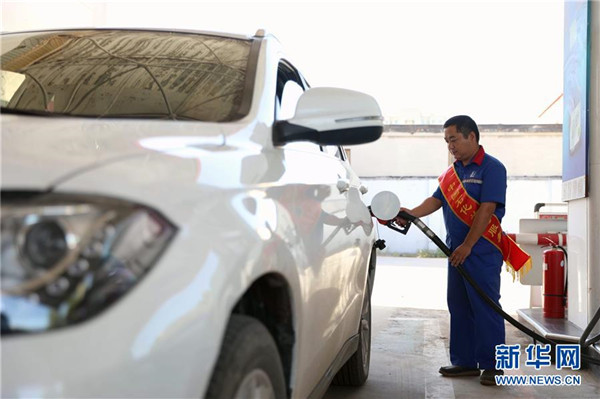 9月3日,河北省任縣一家加油站工作人員給車輛加油。 當(dāng)日,國(guó)家發(fā)展改革委發(fā)布消息,按照現(xiàn)行成品油價(jià)格形成機(jī)制,自2018年9月3日24時(shí)起,國(guó)內(nèi)汽油、柴油價(jià)格每噸分別上調(diào)180元和170元。 新華社發(fā)(宋杰 攝)