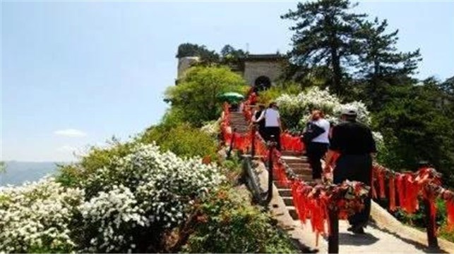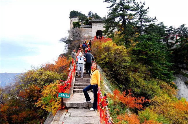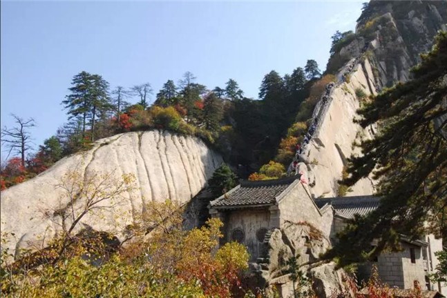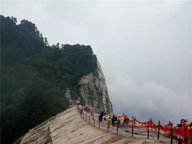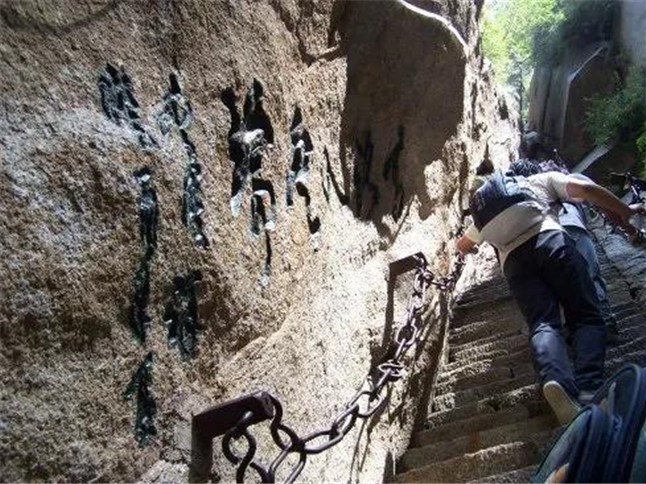 魏晉南北朝時,還沒有通向華山峰頂?shù)牡缆?。直到唐朝,隨著道教興盛,道徒開始居山建觀逐漸在北坡沿溪谷而上開鑿了一條險道,形成了"自古華山一條路"。