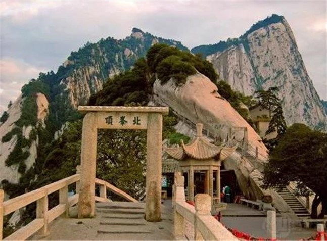北峰海拔1614米,為華山主峰之一,因位置居北得名。北峰四面懸絕,上冠景云,下通地脈,巍然獨秀,有若云臺,因此又名云臺峰。唐李白《西岳云臺歌送丹丘子》詩曾寫到:“三峰卻立如欲摧,翠崖丹谷高掌。白帝金精運元氣,石作蓮花云作臺。”