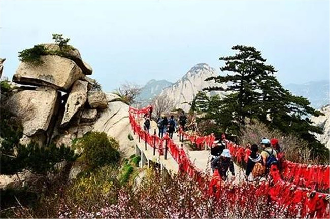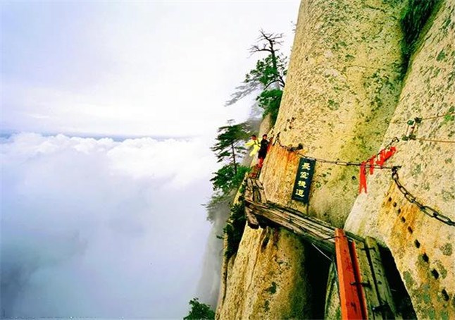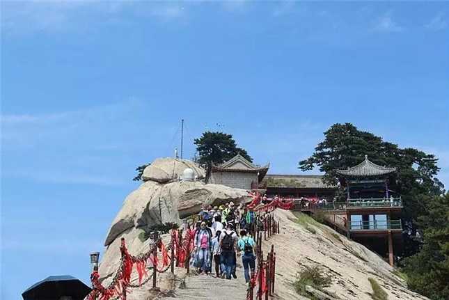 由于華山太險,所以唐代以前很少有人登臨。歷代君王祭西岳,都是在山下西岳廟中舉行大典?!妒酚洝份d,黃帝、虞舜都曾到華山巡狩。據(jù)記載,秦昭王時命工匠施鉤搭梯攀上華山。