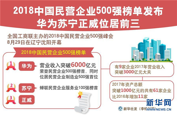 日前在沈陽召開的“2018中國民營企業(yè)500強峰會”上,全國工商聯(lián)發(fā)布了最新的中國民營企業(yè)500強榜單。