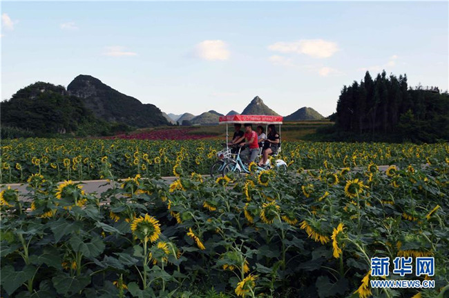 云南羅平的七彩花田(9月5日攝)。新華社記者楊宗友攝