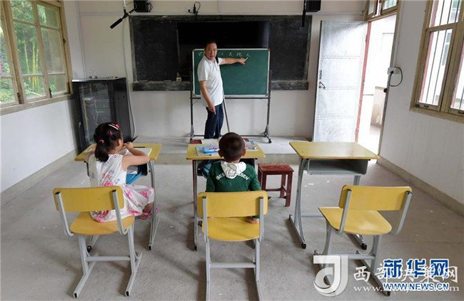 高自仁給一年級(jí)的孩子們上語(yǔ)文課(9月3日攝)。新華社記者 彭昭之?dāng)z