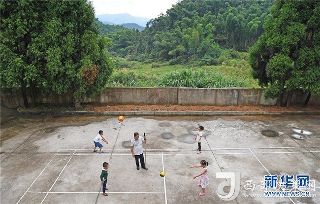 高自仁帶著孩子們?cè)趯W(xué)校的小操場(chǎng)上體育課(9月3日攝)。新華社記者 萬(wàn)象攝