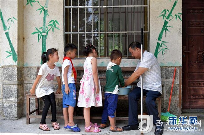午飯開(kāi)飯前,高自仁幫助孩子們洗手(9月3日攝)。新華社記者 彭昭之?dāng)z