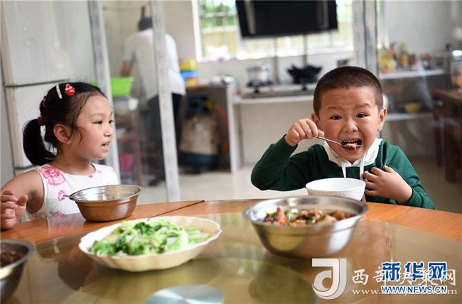 學(xué)生在吃高自仁做的午飯(9月3日攝)。新華社記者 萬(wàn)象攝