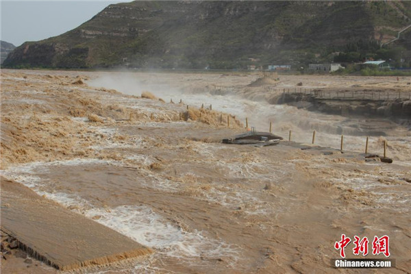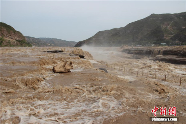 近日,黃河壺口瀑布水量大增,湍急的水流攜帶大量的泥沙奔涌而下,主瀑布幾乎沒(méi)有落差,出現(xiàn)“水岸齊平”的景象。 阿琳娜 攝