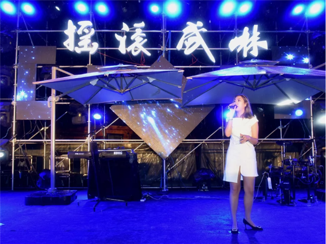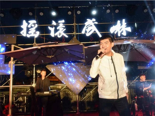 星空音樂趴于當晚18時30分正式開始,在層巒聳翠中,浩瀚星辰下,由原創(chuàng)搖滾實效樂隊帶來的動感音樂瞬間點燃全場,華旅集團營銷中心各位美女為大家?guī)韯痈鞋F(xiàn)代舞,馬超武術表演隊伍更是展現(xiàn)了劍、九節(jié)鞭、棍、拳的華夏男兒力量之美,DJ、MC電音律動,現(xiàn)場聽眾更是融入其中,服裝上的熒光粉在夜空中也化作點點星光,與天、地、舞臺融為一體,撩人電音牽手活力運動,燃爆初秋的第一把火!這是一個聞所未聞的華山“武林”。