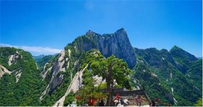 又因峰巔有巨石形狀好似蓮花瓣,古代文人多稱其為蓮花峰、芙蓉峰。西峰為一塊完整巨石,渾然天成。西北絕崖千丈,似刀削鋸截,其陡峭巍峨、陽剛挺拔之勢(shì)是華山山形之代表,因此古人常把華山叫蓮花山。西峰南崖有山脊與南峰相連,脊長(zhǎng)300余米,石色蒼黛,形態(tài)好像一條屈縮的巨龍,人稱為屈嶺,也稱小蒼龍嶺,是華山著名的險(xiǎn)道之一。