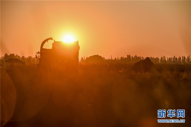 9月26日,收割機在新疆察布查爾錫伯自治縣納達齊牛錄鄉(xiāng)的一處稻田收割水稻。眼下,地處新疆伊犁河谷的察布查爾錫伯自治縣約20萬畝水稻迎來收割季。當(dāng)?shù)剞r(nóng)民搶抓農(nóng)時,忙碌在金色田園中。記者 胡虎虎 攝