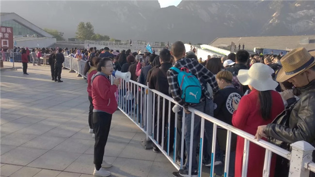節(jié)日期間,景區(qū)實施了一系列限流、分流措施,集團通過官網(wǎng)、微博、微信、廣播、LED屏幕等平臺定時公布景區(qū)天氣情況、游客數(shù)量、車輛飽和度等信息,在景區(qū)客流即將達到當(dāng)日限控客流時,及時發(fā)布周邊景區(qū)旅游信息,引導(dǎo)游客現(xiàn)行前往周邊景區(qū)游覽。限控措施的實施對景區(qū)山下餐飲、住宿等旅游產(chǎn)業(yè)以及潼關(guān)東山、少華山以及洽川濕地等渭南市周邊景區(qū)起到了有效帶動作用,促進了渭南市全域旅游快速發(fā)展。度節(jié)期間,集團積極協(xié)調(diào)相關(guān)單位,將執(zhí)勤任務(wù)與旅游服務(wù)相結(jié)合,順利完成了反恐防暴、應(yīng)急處突、安全保障、客流疏導(dǎo)等度節(jié)執(zhí)勤工作任務(wù),并在游客中心區(qū)域派駐應(yīng)急通訊車,確保景區(qū)通訊暢通。此外,集團督查工作組持續(xù)深入一線,按照“三必查五必看”的標準要求,突出重點環(huán)節(jié),嚴格督查工作,推動各單位進一步夯實責(zé)任、提高工作標準,有效確保了度節(jié)工作的順利開展。