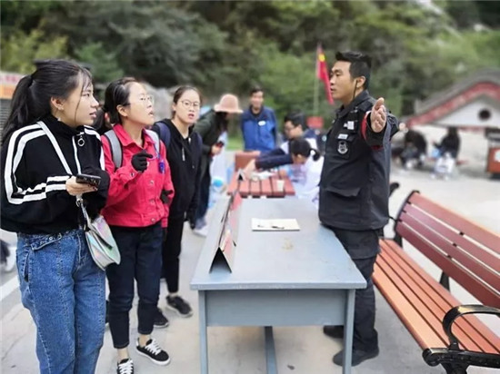 當(dāng)有行動(dòng)不便的游客游覽時(shí)、當(dāng)有游客的手機(jī)丟失時(shí)、當(dāng)游客的包掉到懸崖下時(shí),第一時(shí)間出現(xiàn)在游客身邊,及時(shí)為游客解決困難,此時(shí)他們的行動(dòng)是對(duì)游客最舒心的安慰。