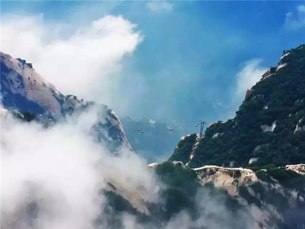站在北峰頂?shù)臋跅U旁,看著飄渺的云海,猶如仙境。路過華山論劍平臺,期待你手舞足蹈揮劍的瀟灑。期待你揮劍拍照的欣喜的模樣。