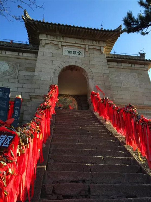 駐足在紀(jì)念亭的臺階上,聽游客談?wù)撝侨∪A山的英勇故事。經(jīng)過擦耳崖,注視著你在小心翼翼的行走的模樣。也經(jīng)過險峻異常的蒼龍嶺,好想大聲吶喊幾聲,聽聽天地間的回響。