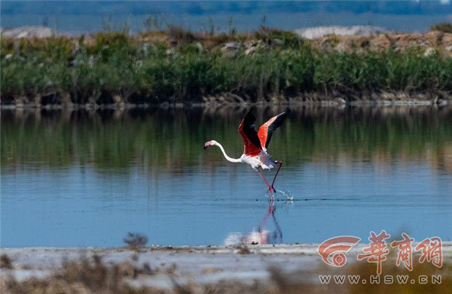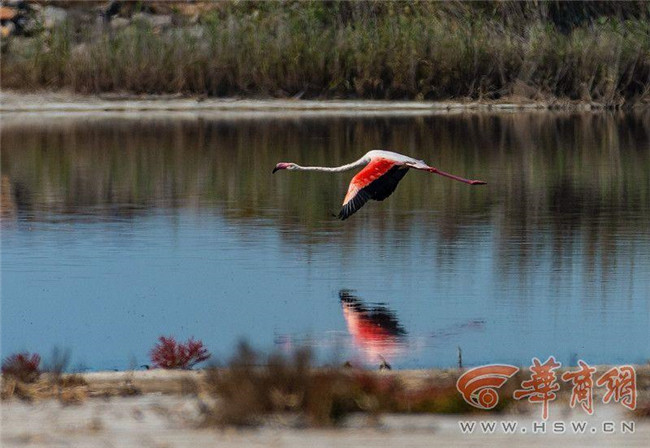近日,榆林市攝影愛好者楊繼焱在定邊縣茍池觀察鳥情時發(fā)現(xiàn)1只鳥,經(jīng)確認為火烈鳥。