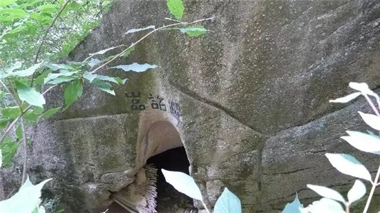 看過金庸武俠小說的童鞋們,一定聽過全真教。那么全真崖呢?它位于南天門西,為松檜峰頂向南懸空傾伸之崖石。出南天門越長空棧道可至崖下。崖腹部有賀老石室,是元初道士賀志真開辟的修行之地?!赌戏逵洝分杏浭觯?ldquo;巖類俯首形,遙覆室上,上書“全真巖”三字,赤色以實(shí)之。雖知人所為,然上不可下,下不可上,其履虛而作之邪?何其神也!”