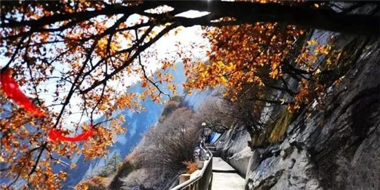 華山的紅葉是一種渾然天成、不加修飾的美。云淡風(fēng)輕、紅葉晚霞,郎才女貌,天然絕配。華山紅葉依托青山白云,無疑中便蘊含大自然神秘的面紗,也吸引名人志士的不懈探索與尋覓,天然造成鐘靈毓秀,是珍稀植物的棲息隱居良地。