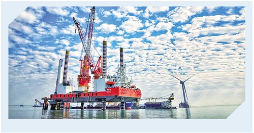 圖為建設中的福建福清興化灣30萬千瓦海上風電場一期工程。 王軼辰攝