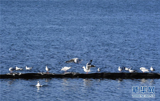 11月8日,紅嘴鷗在大理洱海上憩息。 初冬時節(jié),云南大理洱海湖水清澈,景色秀麗迷人。 新華社記者楊宗友攝