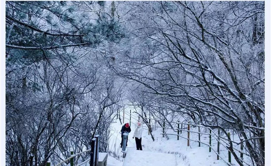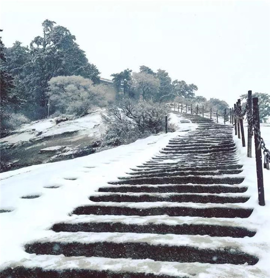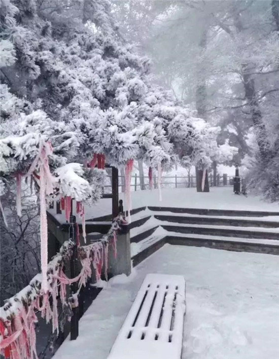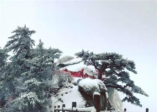冬季的華山少了夏季的喧鬧,白雪與松檜、陽(yáng)光與山石就是它最美的景象。每年12月至次年3月是華山的雪季,而前兩天華山已經(jīng)提前下過(guò)雪了,整個(gè)山體被白雪覆蓋,樹木、巖石、道觀上都披上一層厚厚的棉衣。走進(jìn)華山仿佛是走進(jìn)了一個(gè)純白的圣潔之地,白色的花崗巖、白色的雪花、白色的樹木…… 在華山,白色也是如此的浪漫唯美。