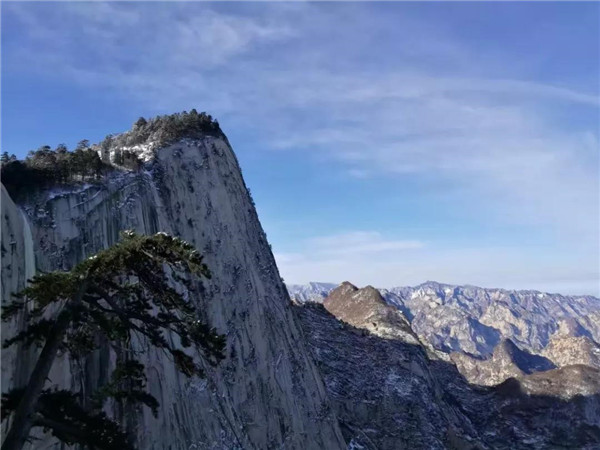 初冬的華山,微風(fēng)中夾雜著絲絲寒意,淡淡的煙云在山間飛舞著、彌漫著,一切都變的清晰、明朗,仿佛整座山脈也變得熱鬧起來(lái)。