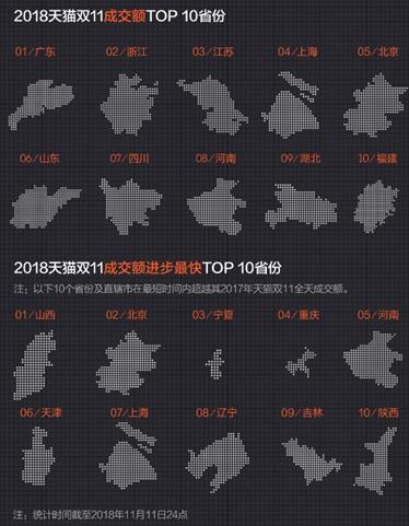 不過(guò),今年最亮眼的地域榜單來(lái)自“進(jìn)步”飛快的10個(gè)大省——它們以最快的速度實(shí)現(xiàn)了對(duì)2017年全天成交額的超越。除了北京、重慶、上海和河南,山西、寧夏、河南、天津、遼寧、吉林、陜西都屬于名副其實(shí)的“剁手新生代”。